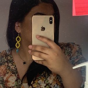 Beautiful and bright handmade earrings, some use on the metal, handmade, bright, yellow and blue, beading, pendant, dangling, perfect for summer and spring!