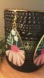 These earrings were handmade with decoupage paper which was adhered to a wooden teardrop pendant and sealed with a glaze finish on the front. The back was hand stained a dark walnut finish and the side are painted a metallic gold.
