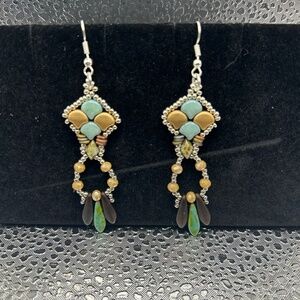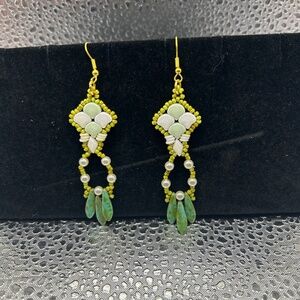 These are handmade Earrings beautiful pieces. This dangling earrings they look crooked but no there more straight than a toothpick. That’s the effect of the photos Need to buy two items you need to buy two items you can mix and match. No returns liquidation sales