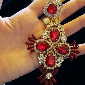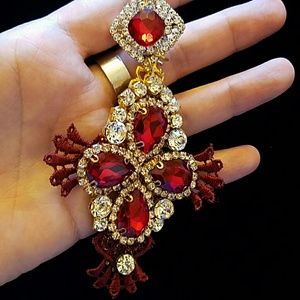 UNIQUE,exceptional earrings, made with Bohemia crystal,glass,brass,rhinestones and lace.Long and perfect statement earrings for prom or any formal ocassion.Not something you can buy in any mall or online. They are truly unique. Glamorous, and fashionable.Ask for discount shipping.