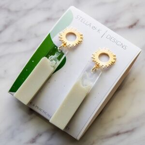 Handmade Earrings - Rectangle Bar Resin Earrings - Cream Shimmer, Clear - NEW
