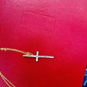 Handmade Earth Grace Artisan Jewelry. Mixed metal cross necklace.