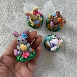 Handmade Easter Bunny Polymer Clay Figurine Sculpture Spring Decor