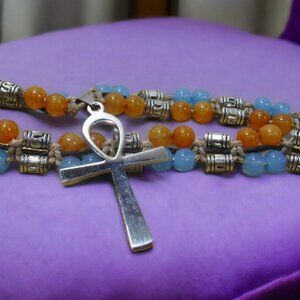 Handmade Egyptian Ankh Necklace with Gemstone Beads. One of a Kind!