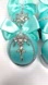 Set of 4 homemade, turquoise decorative orbs adorned with rhinestones and bows. Perfect for adding a touch of elegance to any space. Used one season. EUC