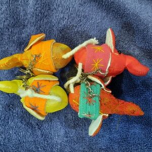 Handmade Set of four colorful elephant keychains. Includes yellow orange & red designs. a cute charm for your keys. Give as a gift or add to your collection.