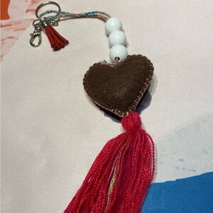 Handmade Embroidered Floral Heart & Tassel Keychain Charm