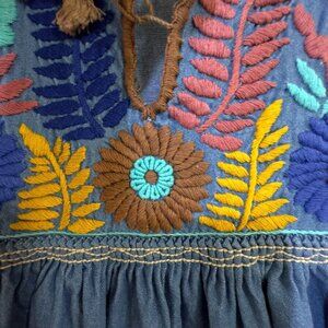 Handmade Embroidered Floral Jumper Dress Denim Modest Boho Chic Cottagecore