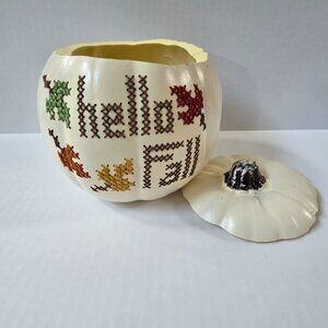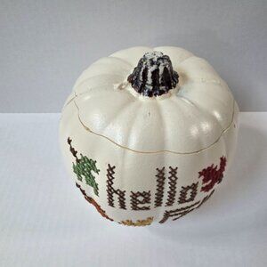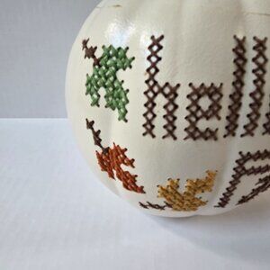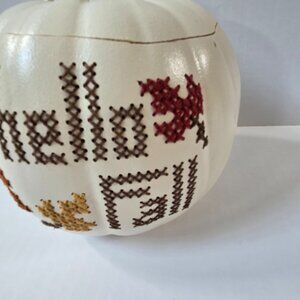 Handmade Embroidered Hello Fall Faux Pumpkin Halloween Decor Folk Art Primitive