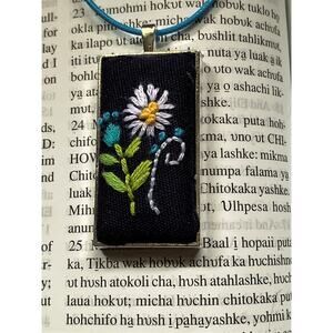 Handmade Embroidery Necklace Daisy Flower - Rectangle Bezel