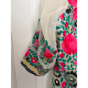 India inspired embroidery dress, meticulous work with shear backing.20" pit to pit, 47" shoulder to hem approximately.