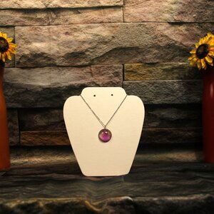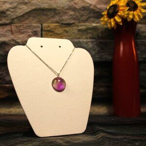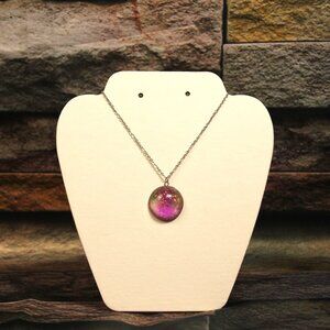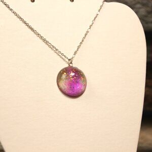 Handmade Epoxy Cicle Pendant w/ Transparnt Colors Pink and Green and Sparkles