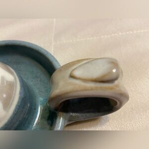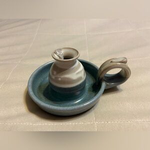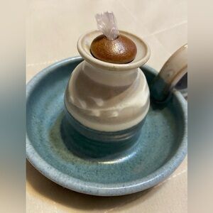 Handmade Erik Hertz Blue/tan Glazed Pottery Art Oil Lamp Candlestick