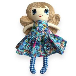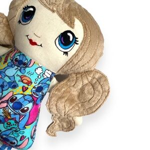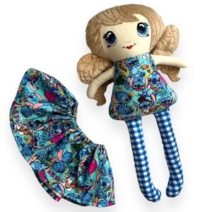 Absolutely adorable one of a kind doll for a forever companion. Lilo & Stitch fabric print for body and removable skirt.