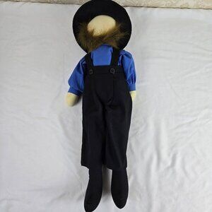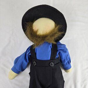 This is a pair of faceless Amish Dolls. Dolls traditionally have no faces in the Amish culture. These dolls are handmade and are dressed in black and blue clothing in a traditional style. Clothing is removable for washing. Soft and perfect for cuddling.