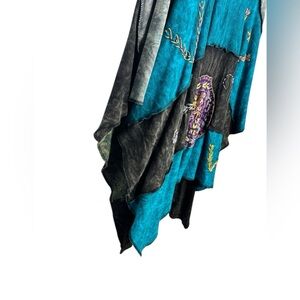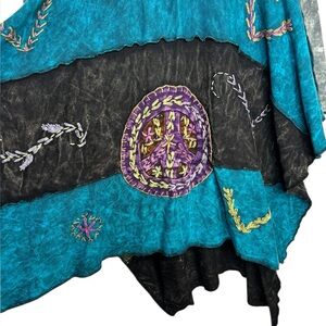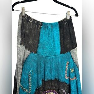 Handmade Fairycore Hippy Patchwork Knit Peace Sign Midi Skirt Cotton Size Large