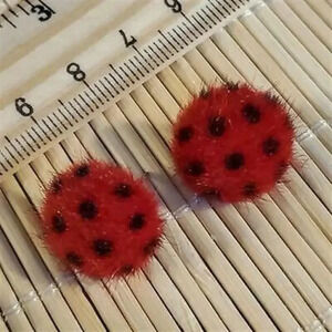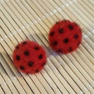 Handcrafted fuzzy faux fur earrings with polka dotted patternMeasures approximately 15mm (about 5/8") diameterRounded "half ball" domed furry cabochons on post earring findingsStainless steel findingsEarnuts (earring backs) included