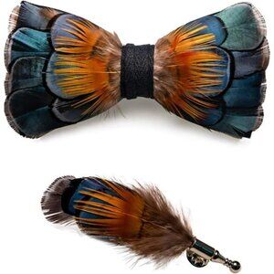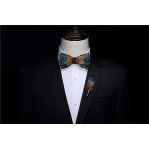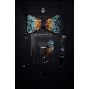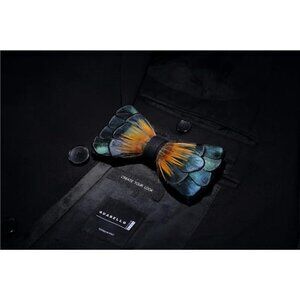 Handmade Feather Pre-tied Bow tie Peacock Orange