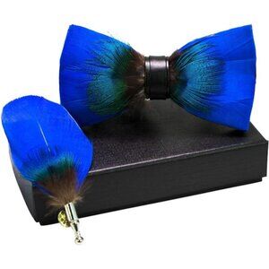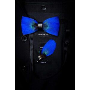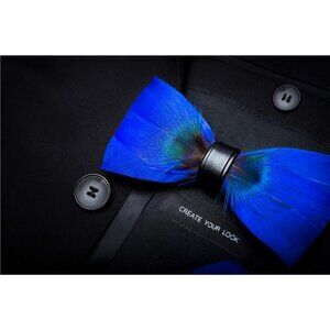 Handmade Feather Pre-tied Bow tie Royal Blue