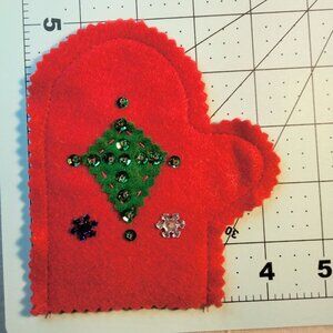 Charming felt mitten ornament adorned with colorful sequins