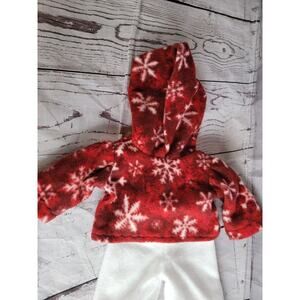 Handmade Fleece Doll Clothes Christmas Winter For 18in Doll the top has a hood and has hook and loop closer on the back in good condition