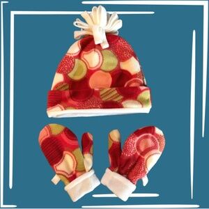 Bundle your little one up in this very soft double lined fleece hat and mitten set.
