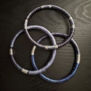 Handmade Flexible Bangle Bracelets from Rwanda - set of 3 blue/silver