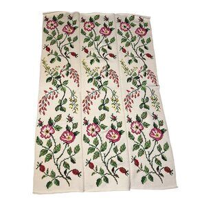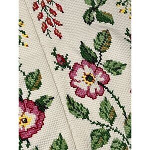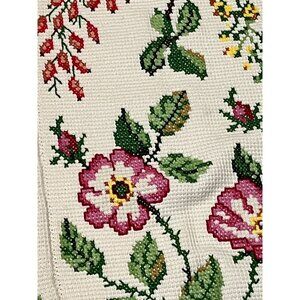 Handmade Floral Blanket Crochet Needlepoint Cross Stitch Afghan Cottagecore 70s