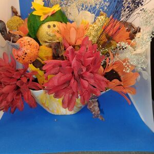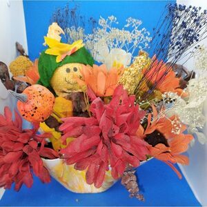 This beautiful artificial faux fall floral arrangement will make a great addition to your home. The more vibrant colors would make this a lovely table centerpiece for a traditional seasonal look. Bright red, yellow , orange make this the perfect piece for fall or autumn.