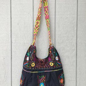 Handmade Floral Embroidered Mexican Satchel Morral Bag - Bolsa Bordada Mexicana