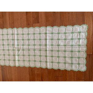 Handmade Floral Lace Table Runner 47" X 14" - White & Green - For Fancy Yet Lazy