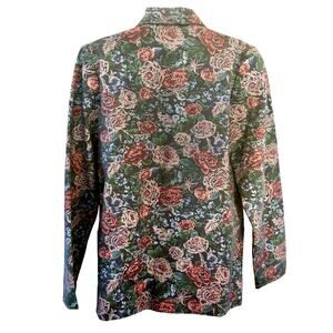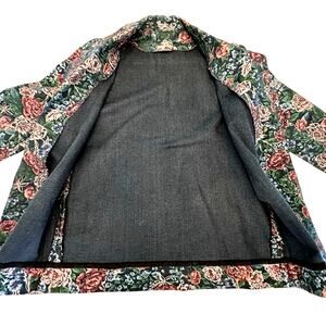 Handmade Floral Print Denim Dark Cabbage Rose Woman’s Jacket Very Good Condition