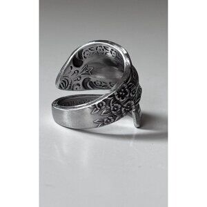 Handmade Floral Spoon Ring - Size 8.5 Silverware Wrap Band Silver