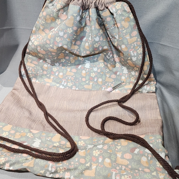 This nature themed drawstring backpack is made with 100% cotton fabric. It would be great for a Scout or young camper! It is 16" long and 12" wide. Plenty sturdy enough to carry the camper's clothing and some supplies or various objects they pick up while hiking. Cute enough to use every day! This bag yells versatility! There is only one and this particular fabric is no longer available so grab it while you can!