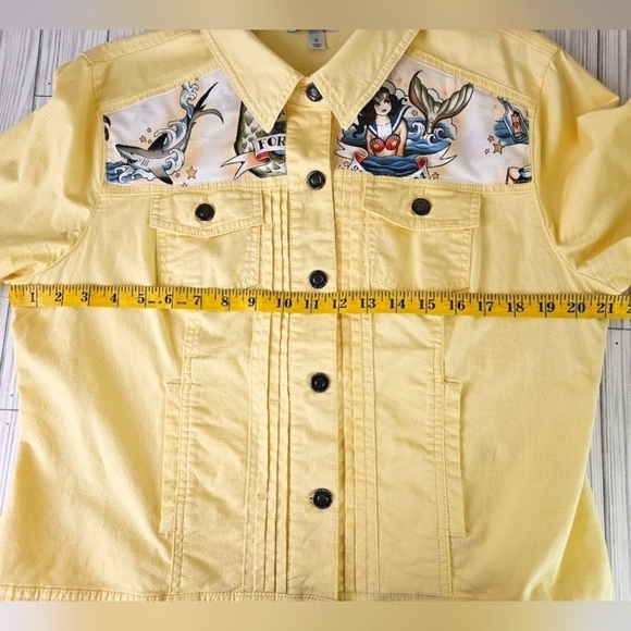Handmade Forget Me Knot Mermaid Tattoo Flash Jacket in Yellow and Blue Sz XL NWT