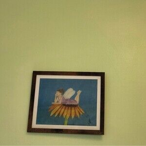 Handmade Framed Pencil Art Fairy on a Sunflower Original Colored Drawing