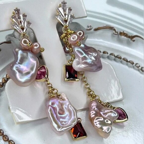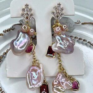 Handmade Freshwater Pink Keshi Pearl Crystal Earrings