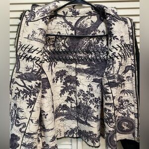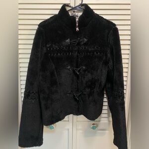 Size approximately M/L. Measurements are pictured to help you decide if it will fit. Armpit to armpit across back is 24”. Sleeve width 9”. Shoulder to shoulder 16”. Collar to bottom 25” length. This jacket is New w/o tags.