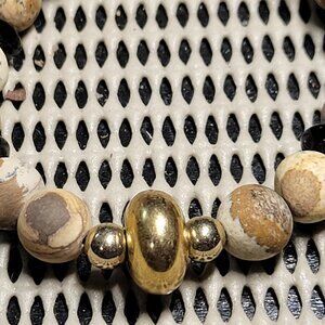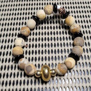 Energy Bracelet #357 | Features Natural Sand Jasper | African black Onyx discs | Antique Copper Gold Plated focal bead | Gemstone Properties: Natural Sand Jasper | Powerful healing stone | helps to ground and center the wearer.