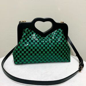 Handmade Genuine Cowhide Check Embossed, Chic Heart Shaped Wooden Frame Satchel