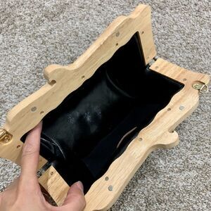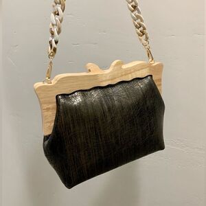 Handmade Genuine Cowhide Embossed Leather Wooden Frame Purse & 2 Strap Styles