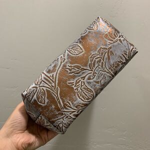 Handmade Genuine Cowhide Floral Embossed, Wooden Frame Bag & 2 Strap Styles