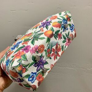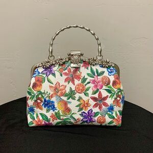 One of a kind. New with tag. Chic design, amazing beautiful & high quality handbag set. Handmade from genuine embossed leather floral printed, with top handle rhinestone metal frame. Use in multiple ways, both can be hand carried or with chains, use together or separately.