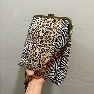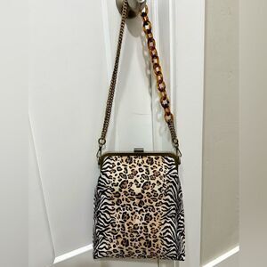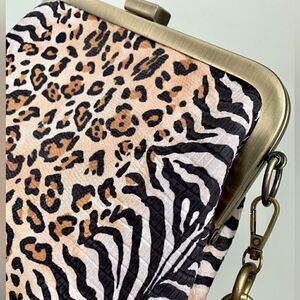 Handmade Genuine Embossed Leather Leopard Print, Metal Frame Handbag/Crossbody