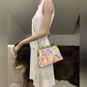 Handmade from genuine nubuck calfskin leather with  imitation hand-painted flower pattern.Special custom metal frame with push lock closure.