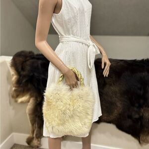 This fluffy & cute tote bag, handmade from genuine shearling with sheepskin braided top handles. Includes as extra, a long leather strap for shoulder or crossbody use. The soft handles can be hidden inside when using a longer shoulder strap.