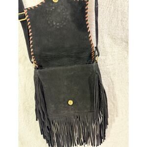 Handmade Genuine Suede Cowhide Fringe Crossbody Turquoise Stone embell New