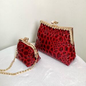 -Big one has a slip pocket inside to hold credit cards or coins, exquisite gold tone hardware metal frame with rhinestones.