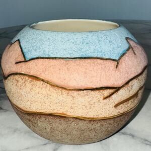 This is a vintage pottery vase by Gina Arrighetti, a self-taught artist from Albuquerque, New Mexico.
