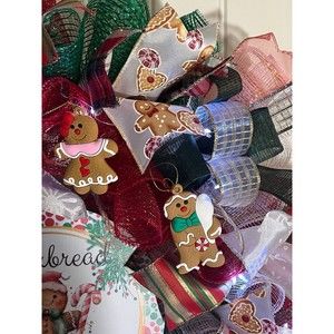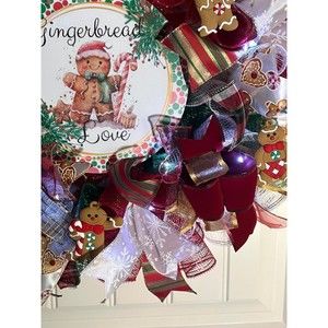 Handmade Gingerbread Love Christmas Holiday Ribbon Door Wreath 22 ins W56